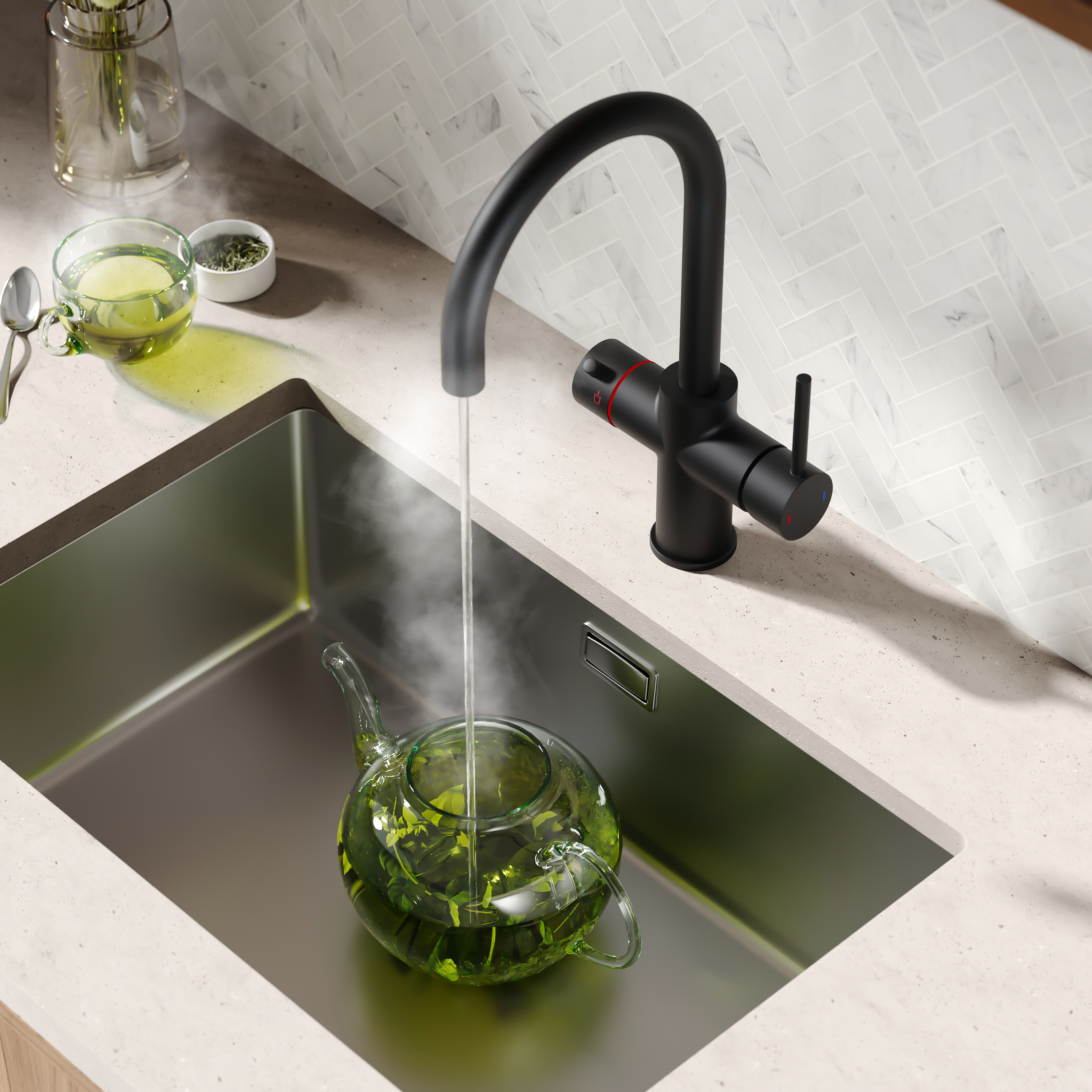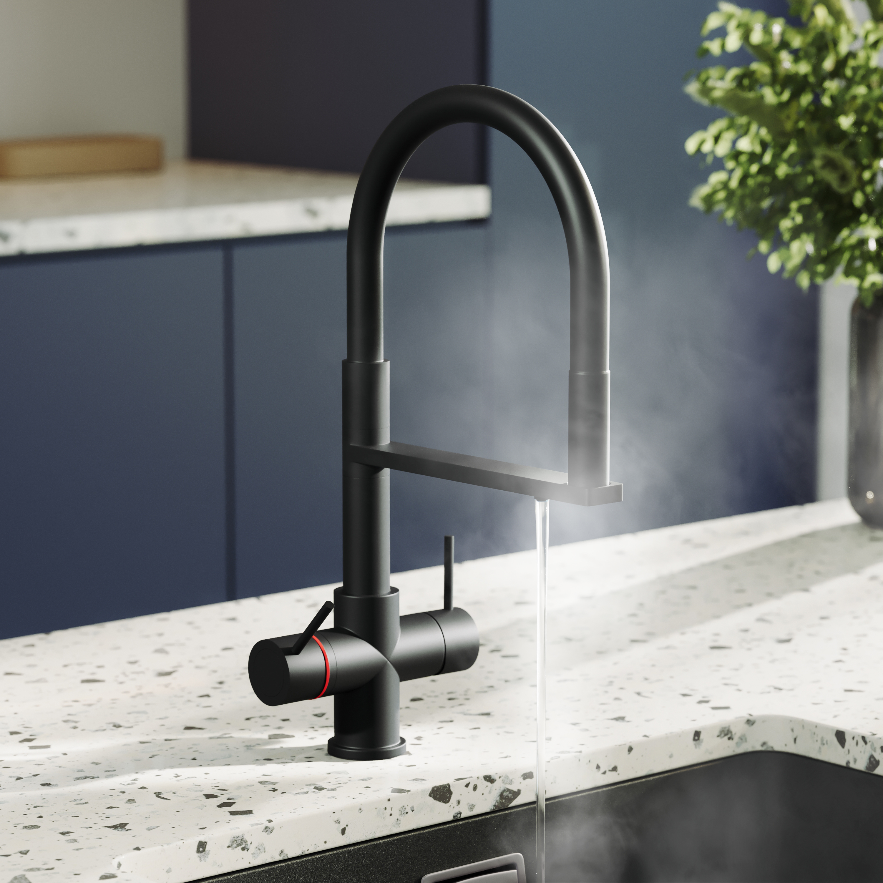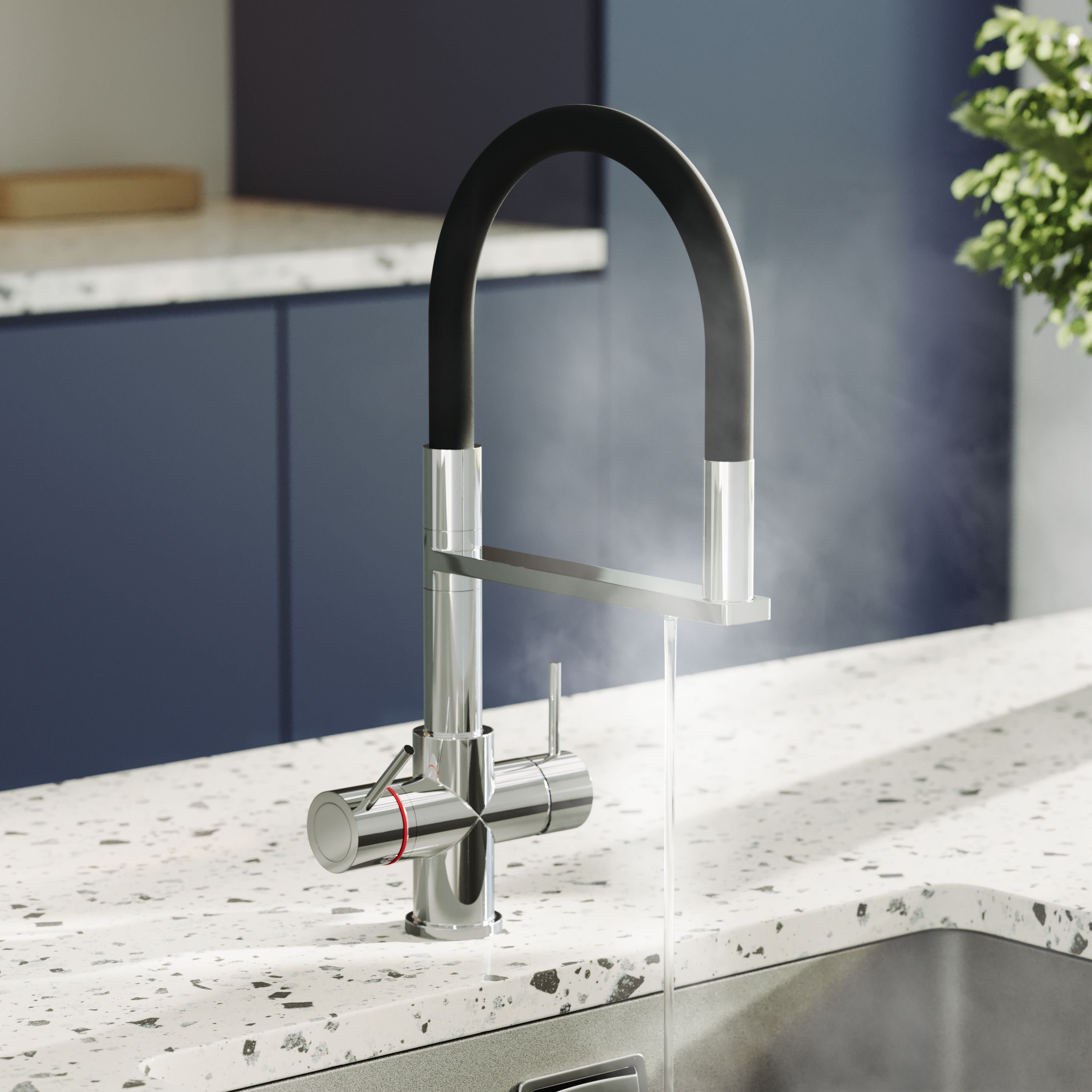 Boiling water taps combine domestic hot and cold water with an instant boiling water flow. With the turn of a lever you can have piping hot water - meaning you never need to boil the kettle again!
